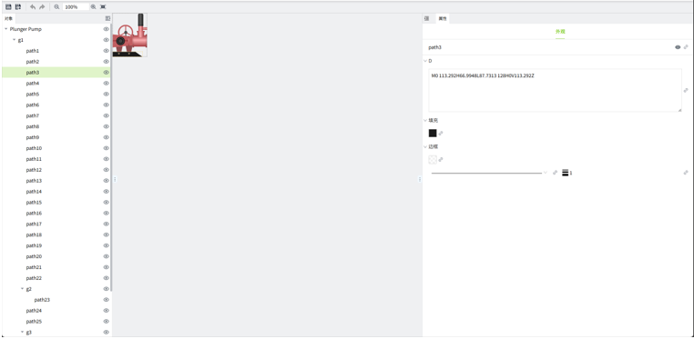 在工业应用场景中,可视化的灵活性至关重要,全新的 SVG 编辑器支持对 SVG 中的各个节点元素进行精准控制,使用户能以更低的成本、更快的速度,打造出符合业务需求的高度定制化界面: